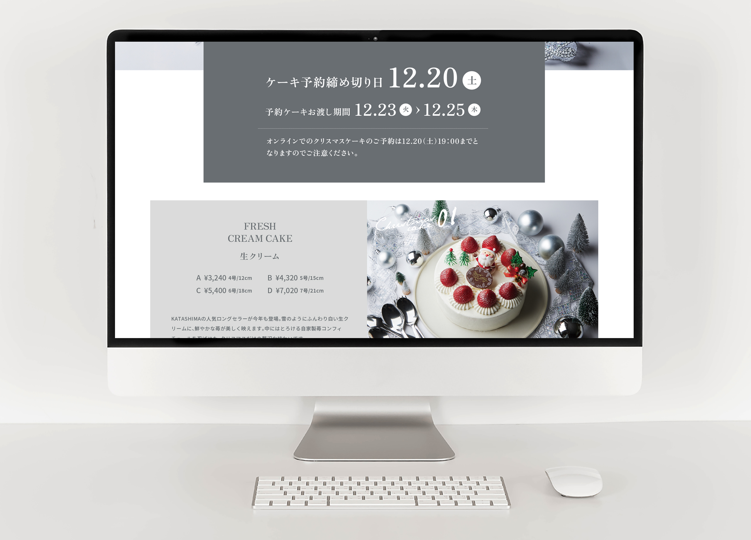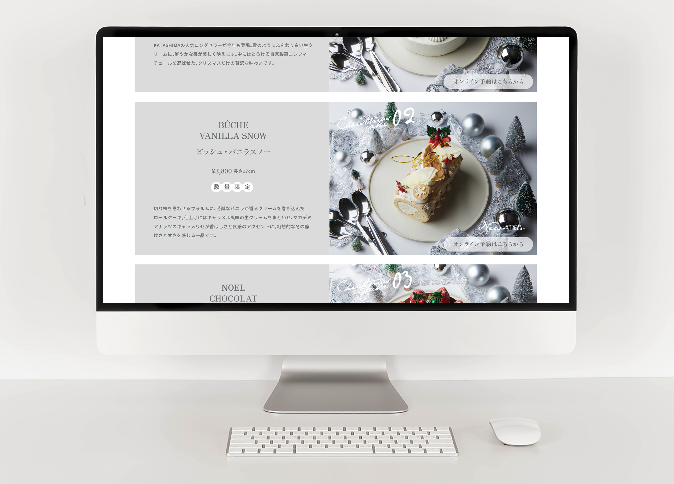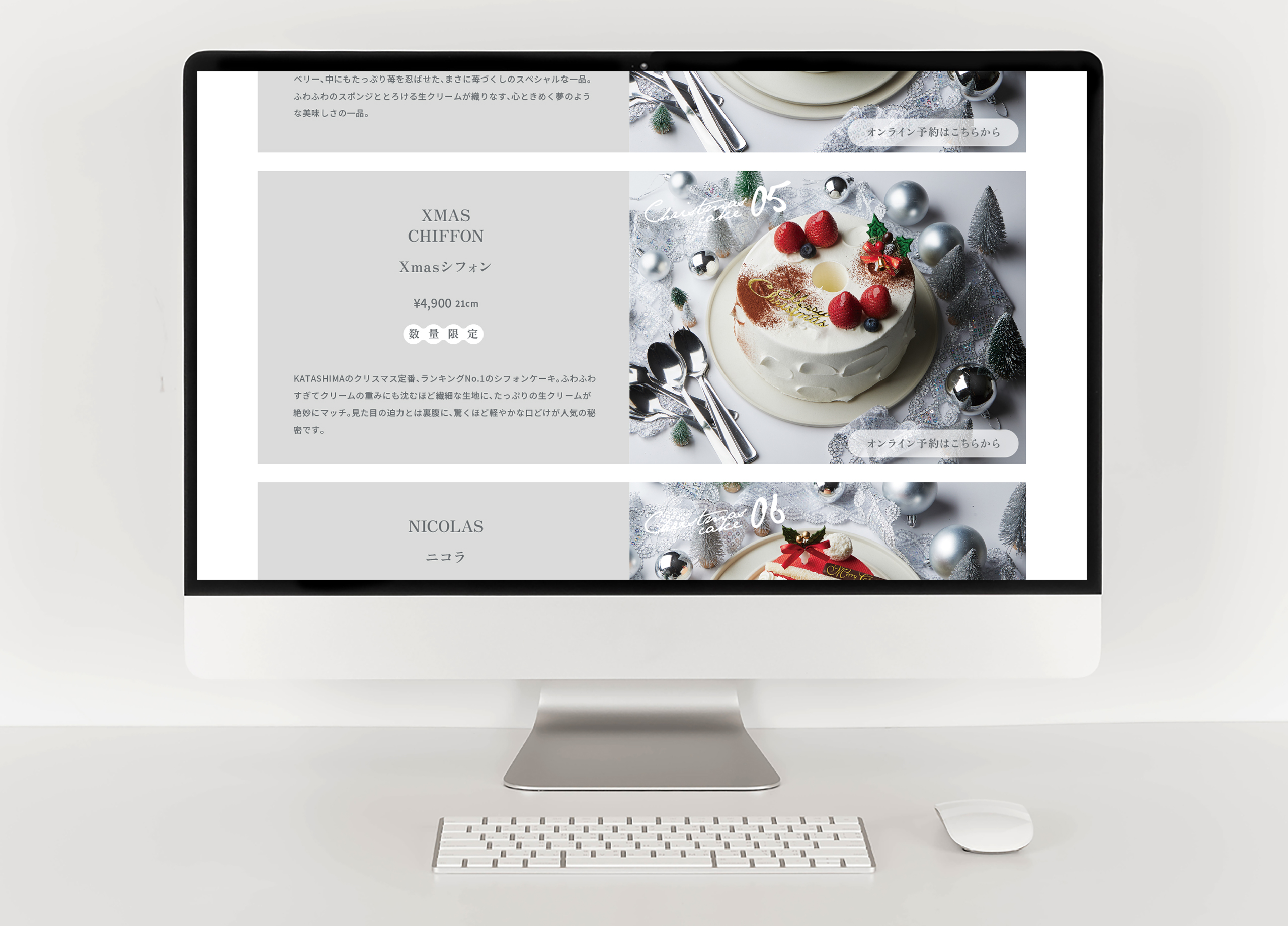 カタシマ株式会社様の“2025 クリスマスケーキ”のパンフレット、ポスター、ランディングページ(LP)、バナーのデザインになります。