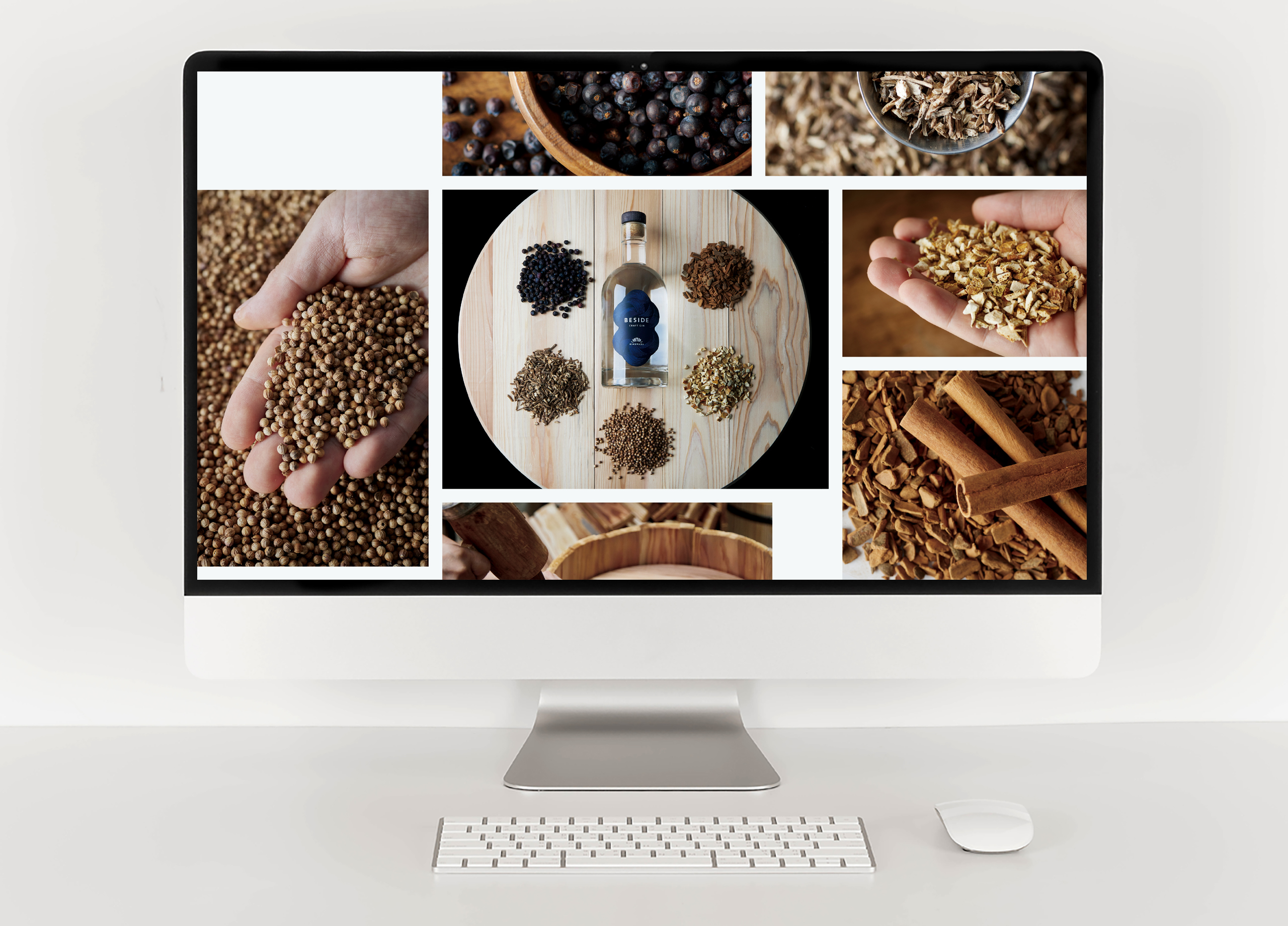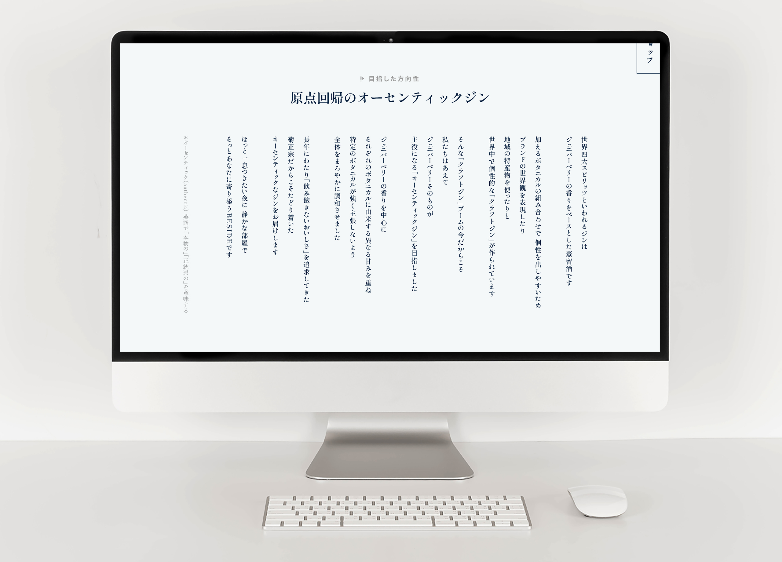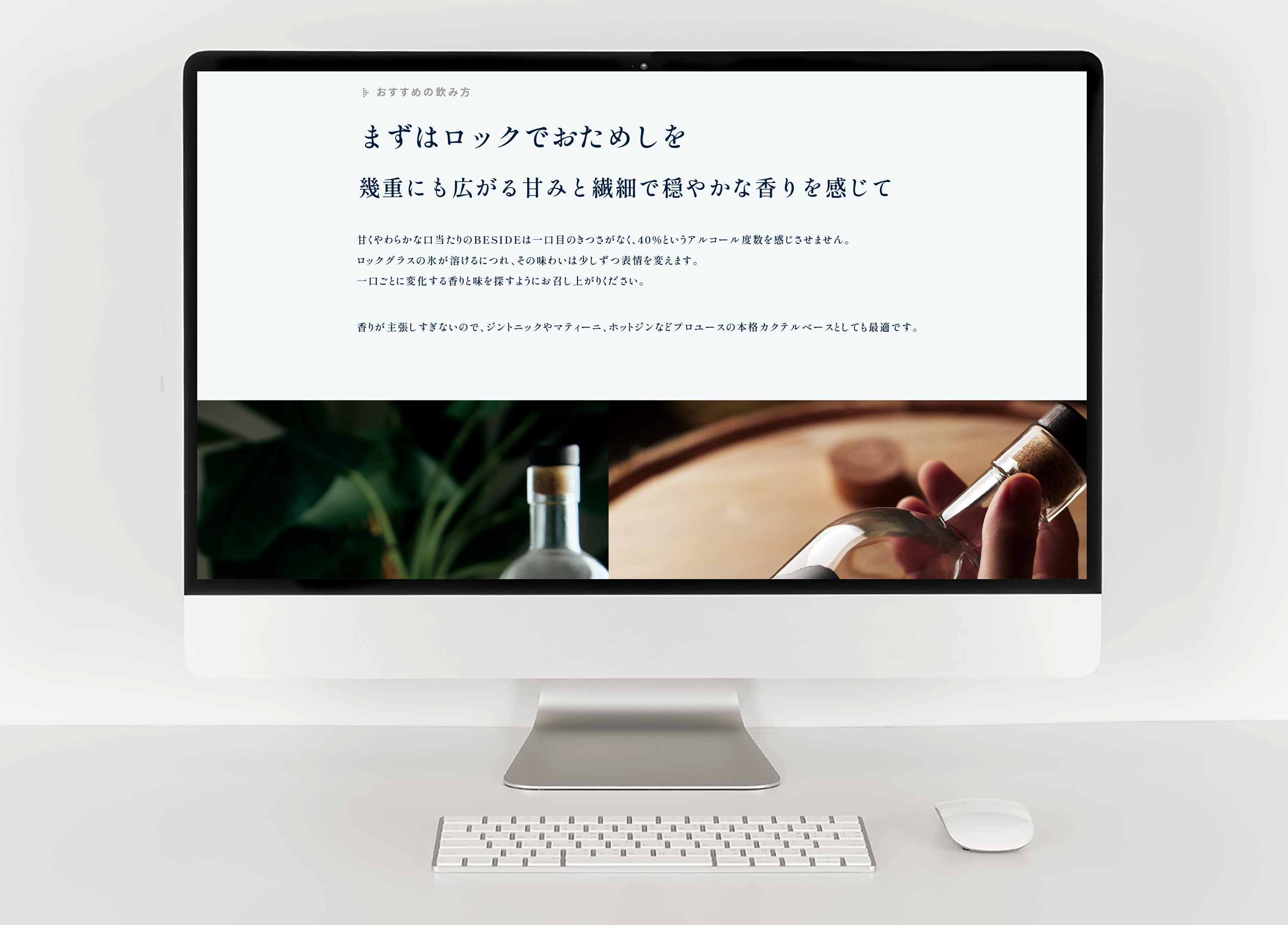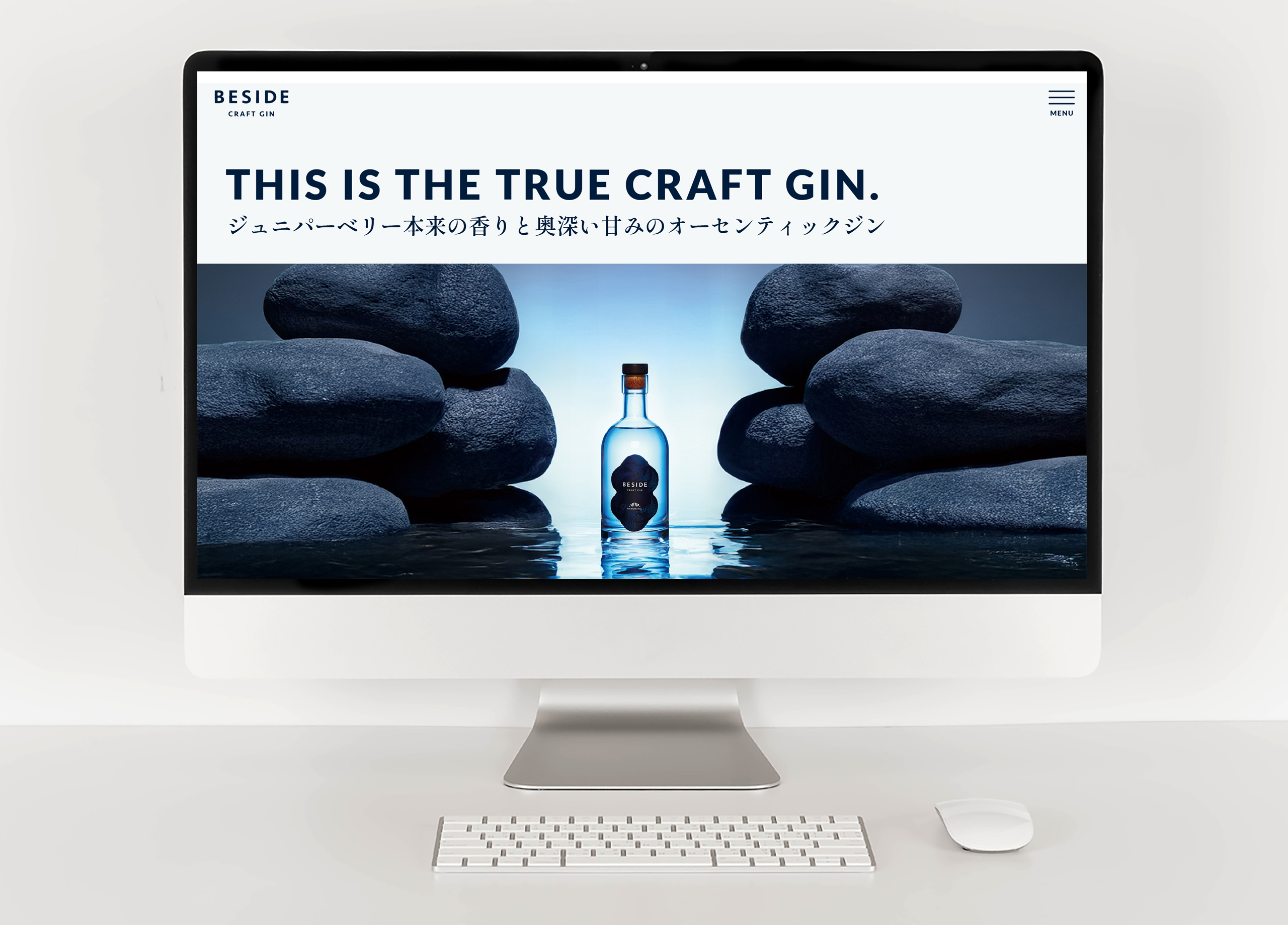 菊正宗酒造株式会社様のクラフトジン「BESIDE」のパッケージ、パンフレット、ランディングページ(LP)をデザインしました。